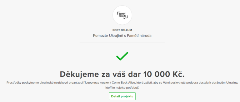 Odeslali jsme na konto POST BELLUM, v rámci svých možností, částku 10 000Kč.